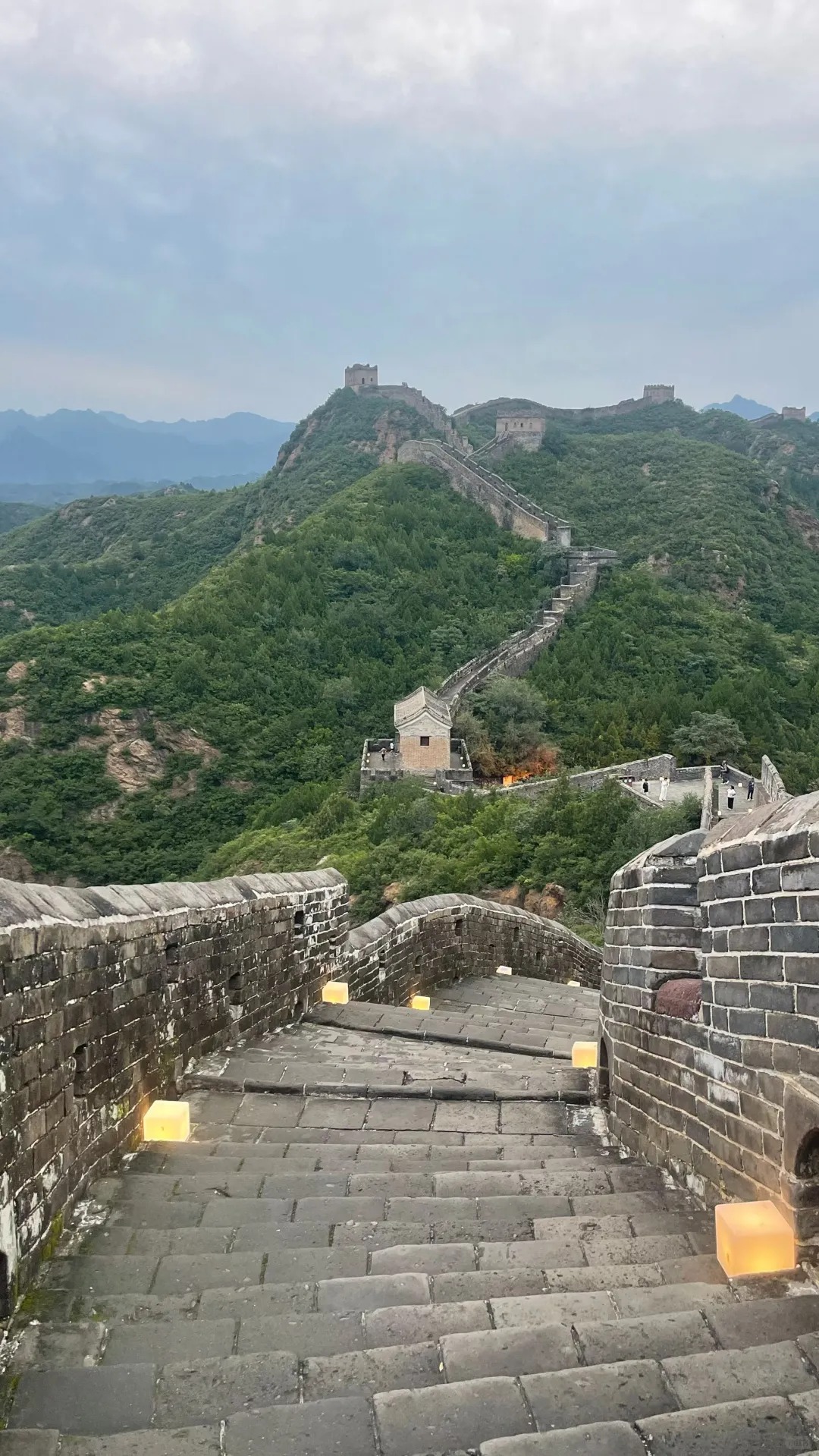 在长城的一段私密观景台坐下来,看夕阳一点点染红山脊。